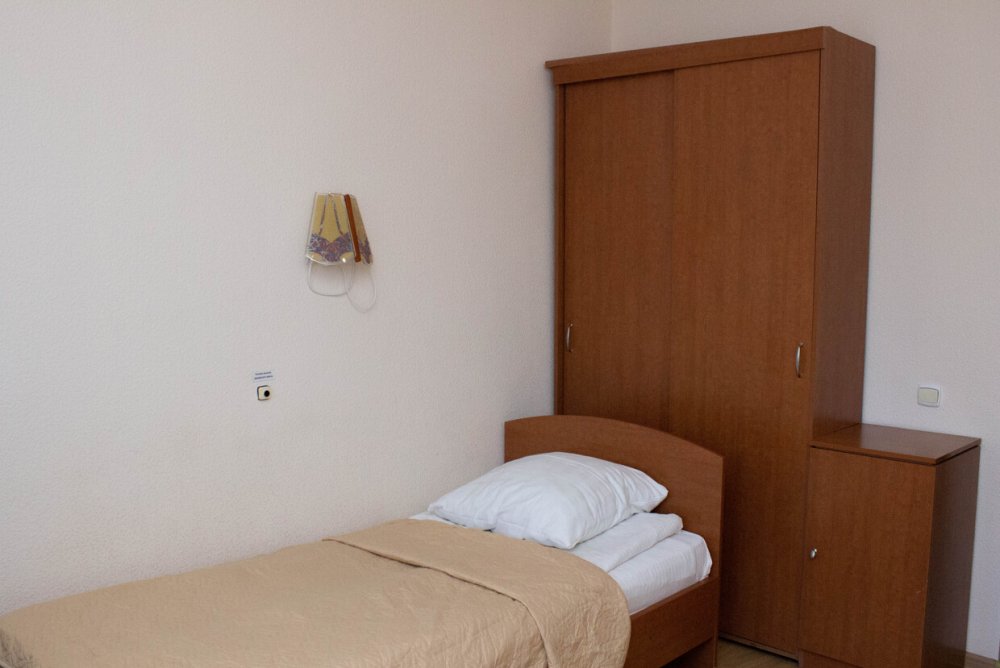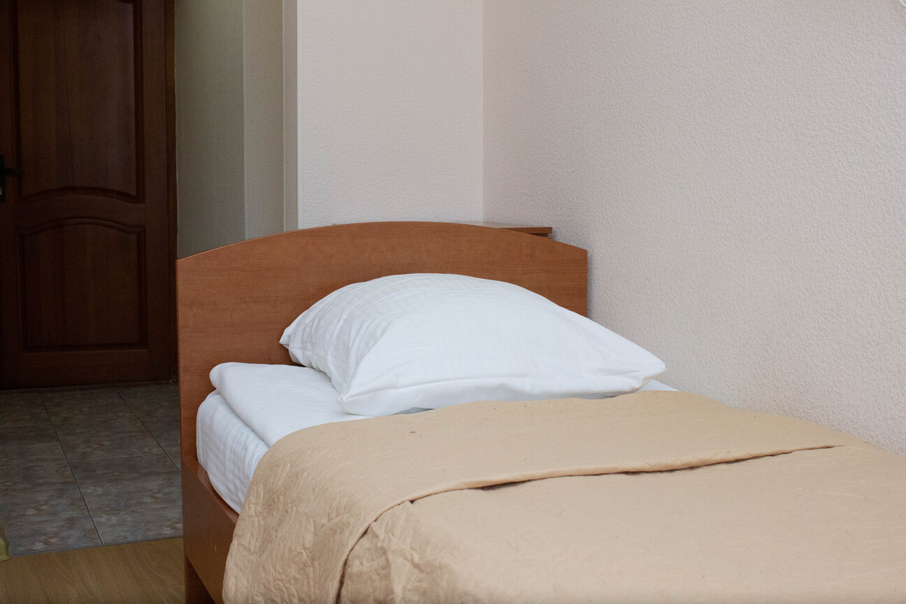 Уютные однокомнатные номера, состоящие из небольшой прихожей и спальной комнаты. В номерах удобная мебель, 2 кровати.